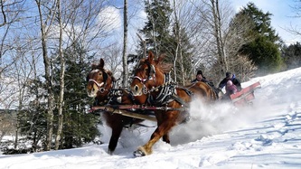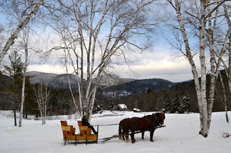 We offer hay rides and sleigh rides at $30.00 per person ($125.00 minimum), weather dependent. Peter has built an extensive trail through our local woods for our "Sleigh-ride like no other", give us a call for more information and pricing.
