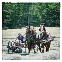 Peter uses our horses, along with his tractor to work on the farm. They mow fields, rake hay, spread manure, pull logs out of the woods and do a fine job of keeping the grass down where needed.